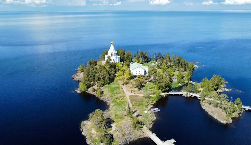 Действующий ставропигиальный мужской монастырь, основанный, по преданию, ещё в XIV веке. Его белоснежные соборы, увенчанные золотыми куполами, возвышаются над скалами Ладоги. Здесь хранятся мощи преподобных Сергия и Германа Валаамских — небесных покровителей острова.