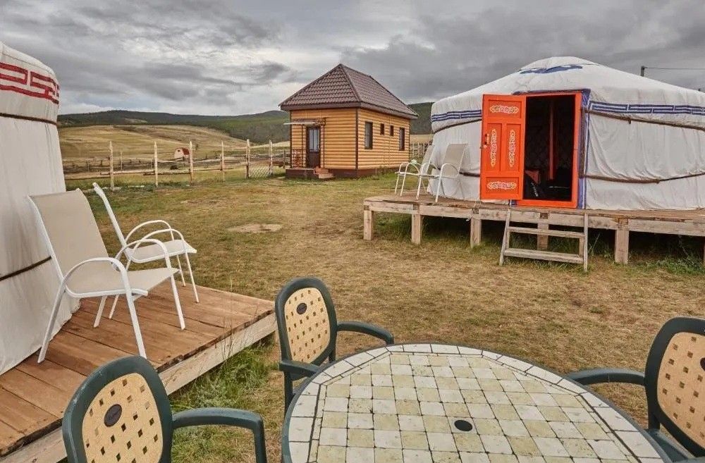 Глэмпинг "Байкал Бабр" — юрточный комплекс на Ольхоне у Халгая (берег Малого моря), панорамные юрты с видом на Байкал, ресторан с завтраками, баня+SUP доски бесплатно, территория без соседей. Глэмпинг Байкал отзывы хвалят отсутствие связи (дикий отдых), вкусные завтраки ресторана, тепло юрт (+22°C зимой), радушие хозяина Богдана, близость к шаман-камню (15 мин). Отзыв 1: «Глэмпинг Байкал Бабр — сказка на Ольхоне! Юрта панорамная, завтраки 5*, баня волшебная. Семье 10/10!» — Мария. Юрты+баня+природа, цены от 7500 руб/ночь.